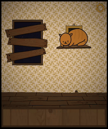 Obviously by petting the cat! She seems a bit hungry though. Other than that, you'll need some kind of tool to remove the woodboards in front of the window. There doesn't seem to be one inside the room, but maybe you can borrow one from your friend, the mouse? Zoom into the mousehole and find a crowbar lying on the floor. Collect it and zoom back out. Use it to remove the woodboards. Afterwards, you can zoom to the moon!Exploring the moon: